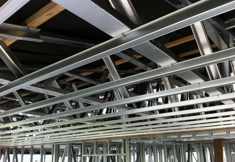 Notre machine TH200 profile des liteaux en acier d’épaisseur maximum 0.75mm. Ce profil a été spécialement développé pour accroître les performances de l’acier, avec une rainure de positionnement des vis et un bord roulé.